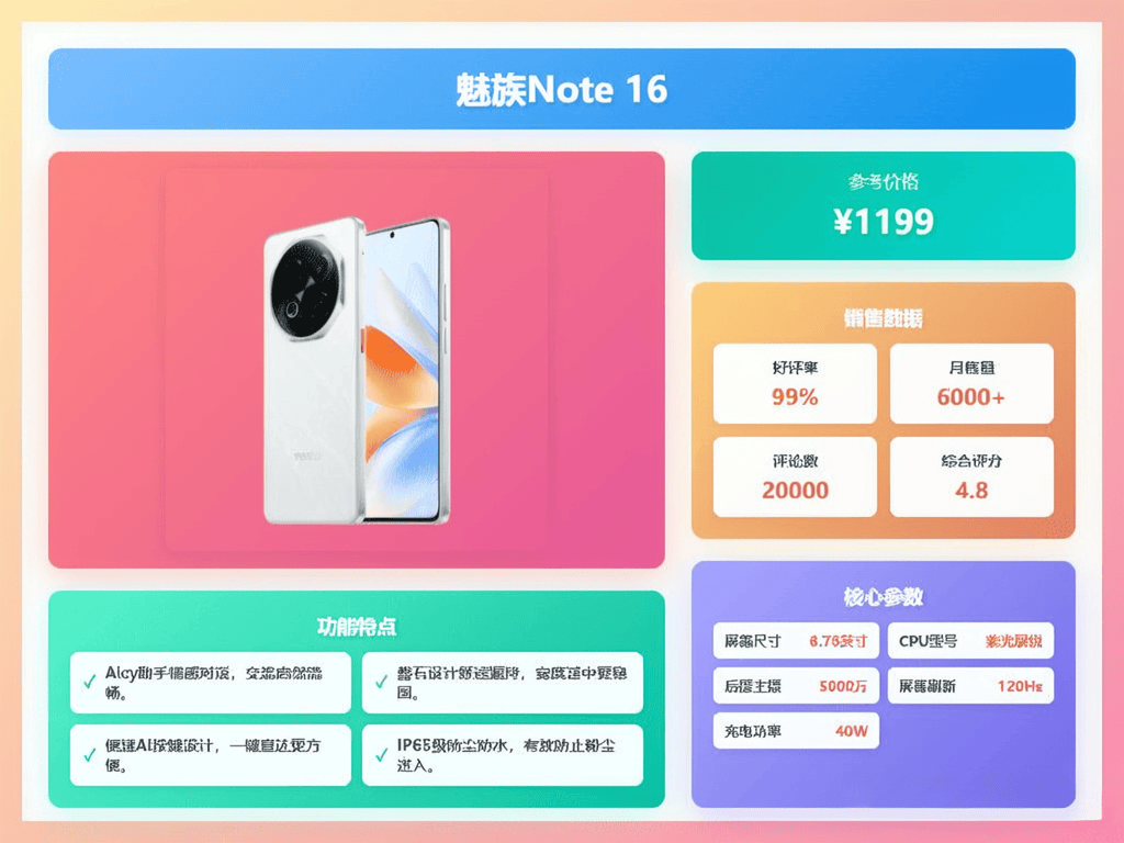 跟着2026年的临近,越来越多的伴侣起头关心千元机的选择。大师纷纷问我:“2026年千元机怎样选?现正在1000元摆布的手机表示若何?传闻良多都流利不卡顿,事实哪款性价比最高呢?”说实话,千元机的市场所作确实激烈,但也不乏优良的选择。现在的千元机设置装备摆设曾经相当丰硕,完万能够满脚学生党和备用机的需求,流利度也不再是问题。不外,闭眼入可不可,终究每小我的需求分歧,选购时仍是要细心挑选,终究谁的钱也不是大风刮来的。千元机市场的水确实深,但也并非无从下手。现正在这个价位的手机机能差别不大,次要看品牌的优化和一些细节功能。1000元摆布的手机好用吗?绝对是好用的!即便是千元机,也能做到日常利用流利不卡顿,以至玩一些小逛戏都没问题。环节正在于选择适合本人的,好比续航、摄影、屏幕等,哪个更主要就往哪个标的目的选。接下来,我为大师拾掇了10款口碑不错的千元机,供大师参考。魅族做为国内出名智妙手机品牌,一曲沉视产物的适用性取用户体验的均衡。品牌自从研发取立异,特别正在操做系统和硬件设想上投入较多资本,力图为消费者带来更为流利、不变的利用感触感染。兼顾美妙取手感,适合逃求质量和细节的用户。其Flyme操做系统也因简练高效而遭到不罕用户承认。