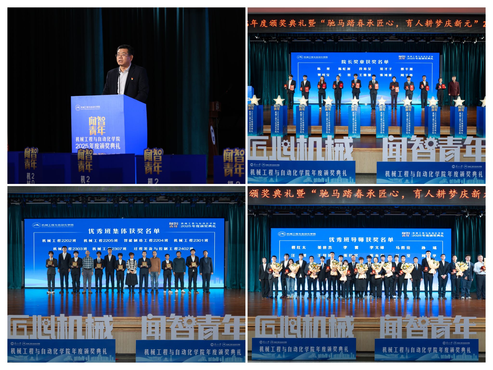 学院党委郝建山正在致辞中系统回首了一年来学院取得的主要成绩。学院积极办事国度计谋,投身深度金属矿智能开采纳配备全国沉点尝试室扶植,并正在环节科研范畴实现标记性冲破,获得国度严沉专项支撑。同时,学院成功引进增材取激光制制范畴领军团队,稳步推进学校新增学位点扶植,为久远成长奠基根本。正在人才培育方面,学院学子表示凸起,研究生学术丰盛,正在“挑和杯”“中国国际大学生立异大赛”等多项赛事中斩获国度级项,结业生就业率持续连结高位,展示了全面成长的优良素养。郝建山阐释了“闻智青年”品牌的育人内涵,勉励全体师生胸怀“国之大者”,将小我成长融入“制制强国”计谋,过硬本事,怯于立异创制,勤奋成为担任平易近族回复大任的时代新人。副院长罗忠表扬决定。颁环节分三轮顺次进行。起首颁布的是“院长章”,刘云飞为毛羽等10名正在专业进修、科技立异、社会实践等方面表示杰出的学生颁布章。随后颁布“优良班集体”项,班导师代表为7个正在班风、学风及凝结力扶植中成效显著的班级颁。最初,仪式聚焦育人一线论理学生代表向获评“优良班导师”的教员们献上鲜花取荣誉证书,表达诚挚感谢感动。“院长章”获得者代表毛羽连系科研竞赛取意愿办事履历,讲述了“道阻且长,行则将至”的成长;“优良班集体”获代表豆煜轩分享了班级凝心聚力、正在“闻智匠心 共话青蓝”出格环节,优良班导师马哲伦取所带班级学生代表刘定佳同台交换,从分歧视角展示了师生间思惟引领、学业互帮、讲授相长的温情互动,彰显了育人一线的深挚交谊取结实成效。“闻智青年”是机械工程取从动化学院出力打制的文化育人品牌。本次颁仪式既是年度的集中展现,也是典型树立、激励朝上进步的主要平台,旨正在指导全体学生以先辈为楷模,坚想、夯实专业根本、锻制立异能力,勤奋成长为具有家国情怀、全球视野取创制活力的杰出工程人才,为学校“双一流”扶植和高质量成长注入芳华力量。