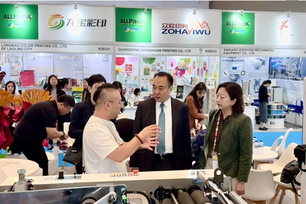 由商务部从办、外贸成长局承办的中国国际包拆、印刷、展会取2025年印尼包拆、印刷、塑料机械展(All pack Indonesia)同期举办,印尼工业手下逛化工取制药工业司司长、印尼食物饮料工业协会从 席、克丽斯塔展览公司首席施行官等嘉宾出席了展会揭幕式。揭幕式竣事后,中外嘉宾配合巡视展馆并取参展企业沟通交换。