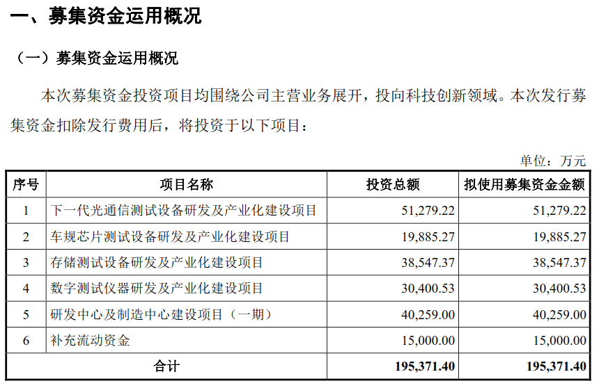 起首看募投项目,申报稿中联讯仪器暗示需要15000万元弥补流动资金,另需要40,259。00万元进行“研发核心及制制核心扶植项目(一期)”。