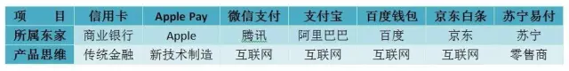 综上,我们基于三种双元分类,别离从从动化程度以及及时和现场处置要求、运营成本以及客户个性化需求、风险办理以及营业亏本能力为组合,对贸易银行信用卡(★)、ApplePay()、微信领取(●)、领取宝(◆)、百度钱包(▲)、京东白条(■)和苏宁易付(▼)七类次要的领取产物正在统一坐标系统下别离进行了定位。研究成果发觉:领取宝、微信领取、百度钱包、京东白条和苏宁易付正在基于办事范式取客户需求的双元定位中具有必然差同化的特色;银行卡和领取宝正在基于运营成本取客户体验的双元定位中具有必然劣势;领取宝和Apple Pay基于风险办理取营业亏本的双元定位中具有比力劣势;信用卡和Apple Pay正在基于使用场景取利用范畴的双元定位中具有先发劣势,而微信领取和领取宝正在基于使用场景取利用范畴的双元定位中具有后发劣势。若是究其根源,向产物的研发底子动因溯源,我们还能进一步挖掘上述七类次要领取产物的特色,进而比力和对标其好坏。领取产物的源起取研发思。产物不只代表产物本身,其内涵源自产物设想者的聪慧,畅通领悟了产物出产者的结晶,更主要的是凝结着产物泉源的文化。所以虽然常言道 “豪杰莫问出处”,但“富贵当问启事”,出格是一款优良产物的内涵取渊源。产物的内涵源自产物的设想者,产物的研发从体决定了产物的特征。从此意义上看,Apple Pay、微信领取、领取宝、百度钱包、京东白条和苏宁易付虽然起步较晚,但更具互联网思维特征,具有厚积薄发的后发劣势。正在产物研发上,具有客户导向、草根思维、持续迭代、反映敏捷、场景聚焦等劣势,使得产物正在某一特殊领取场景下实现了“病毒式”,深根细化的,并“小步快走”组织升级和完美,这是保守企业难以企及的。例如,微信红包借帮年节节庆场景一炮走红,笼盖了老中青三代客户,并制制出“红包照片”等特殊的文娱场景;领取宝则借帮其强大的消费收集、曲销的理财渠道、社会持续关心的口碑实现了后发先至。此中,Apple Pay源自手艺研发和出产企业,微信领取、领取宝、百度钱包和京东白条源自互联网企业,囊括了百度、阿里和腾讯这国内互联网三巨头(BAT)。比拟之下,信用卡大多源自贸易银行,也就是保守金融企业,其研发思更可能遭到保守银行文化的影响取。